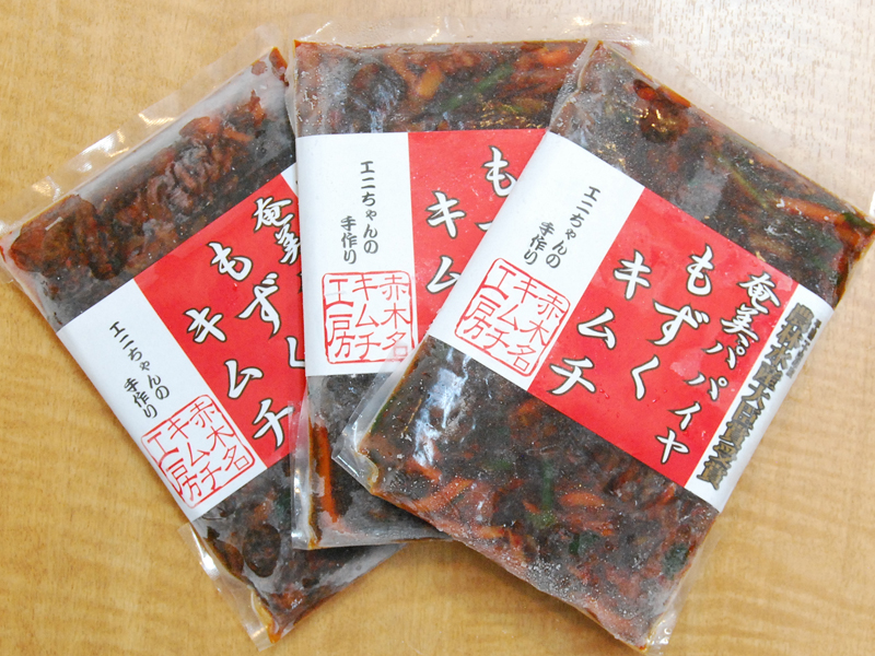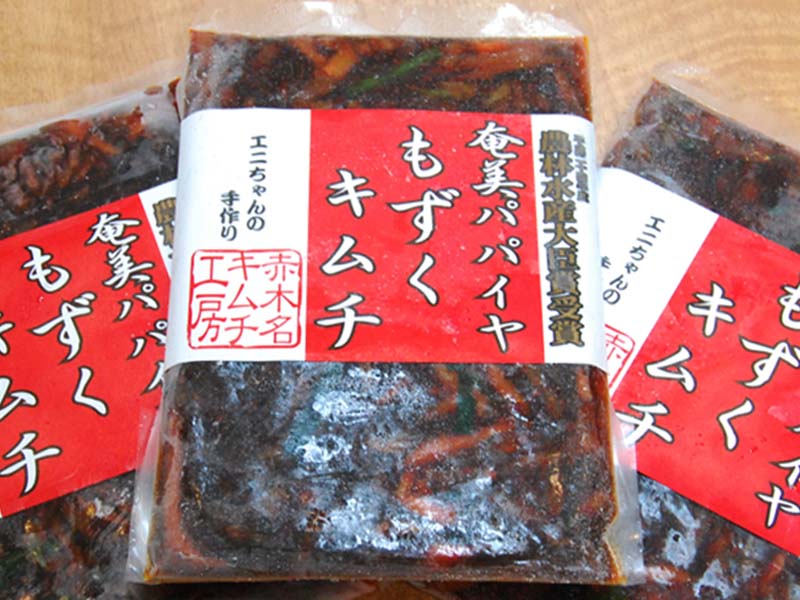 奄美大島の採れたて生もずくと新鮮な青パパイヤを使って「奄美で初めて」作られた本場韓国にもないキムチです。その日に冷凍し、