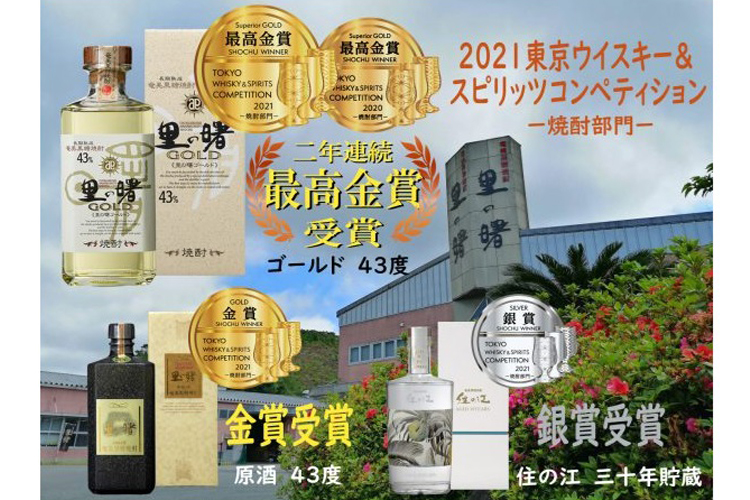 『里の曙 ゴールド』が最高金賞(2年連続受賞)、『里の曙 原酒』が金賞、